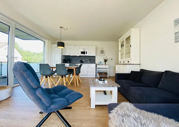 Quartier Hohe Geest 3 - Strandnah Mit Saunaはクックスハ-フェンのSahlenburg地区に位置し,宿泊施設中ののWi-Fiを提供しています. その施設の特色は,部屋にあるバルコニ-,座席 と無線LANの他,器具でいっぱいの台所です.